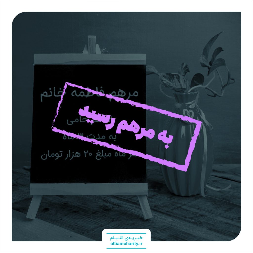 با این اوصاف چشم و دلمان به سوی شماست تا با پرداخت ماهانه ۲۰.۰۰۰ تومان به مدت ۳ ماه مرهم فاطمه خانم عزیز باشید.
